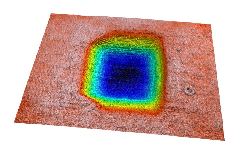 通過(guò)3D掃描可以得到表面的三維成像,呈現(xiàn)出彩色三維圖像或自上而下的等高線圖像??梢詮闹刑崛〗孛?線中的三維或二維數(shù)據(jù)。