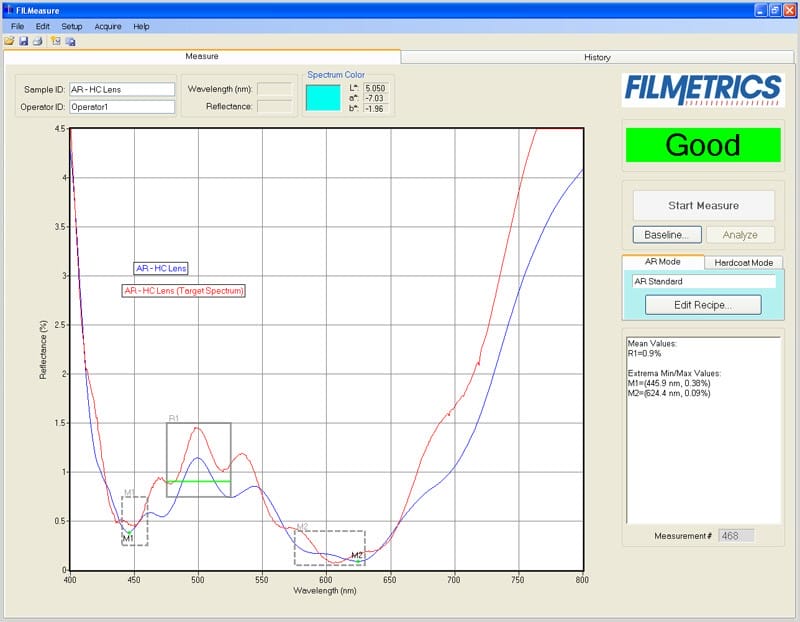 在眼鏡鏡片行業(yè),Filmetrics F10-AR 薄膜厚度測(cè)量?jī)x是專門(mén)為各類眼鏡鏡片減反射(AR)光譜和殘余顏色,以及硬涂層和疏水層的厚度;
